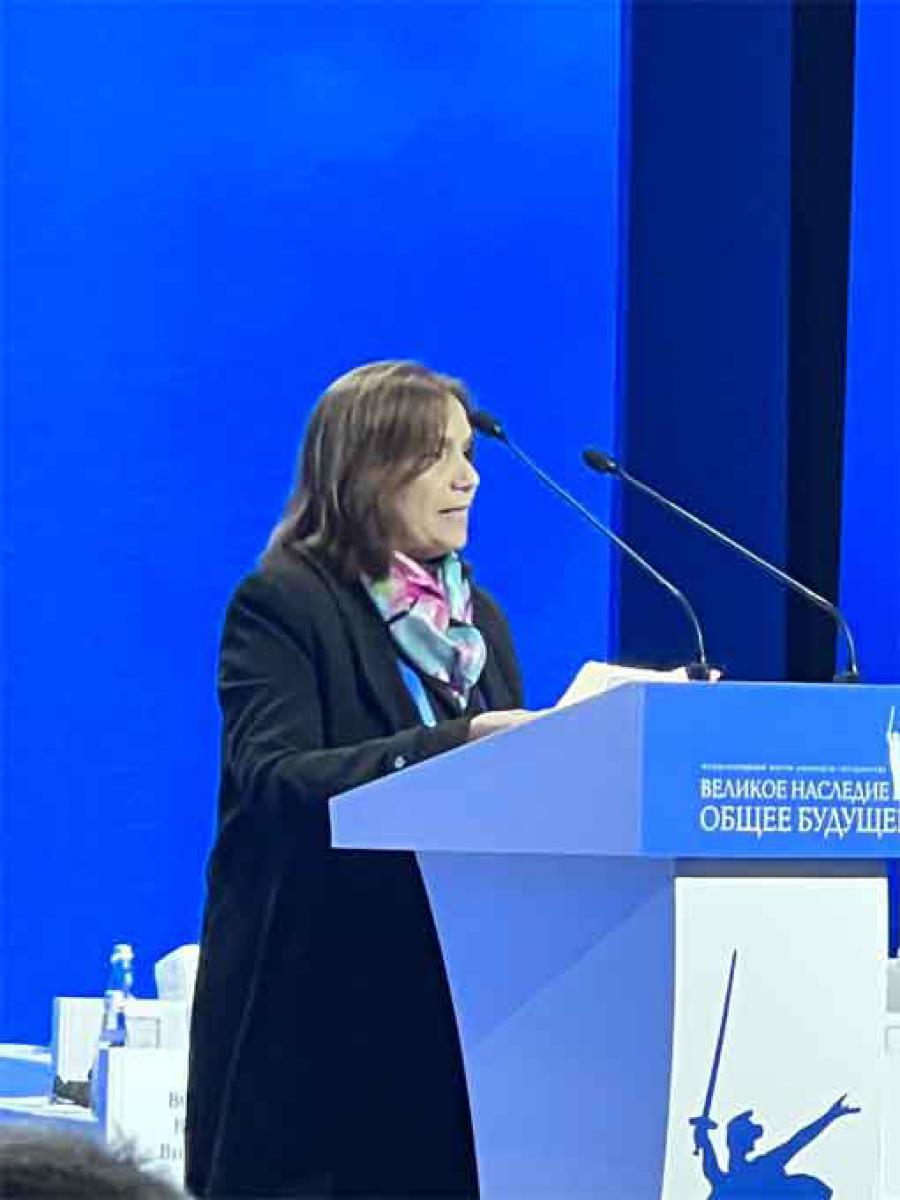 A propósito de las celebraciones por el aniversario 80 de la victoria del pueblo soviético contra la Alemania nazi en la II Guerra Mundial, la diputada insistió en la necesidad de no olvidar la historia y reitero la importancia defender la paz como bien sagrado de la humanidad.