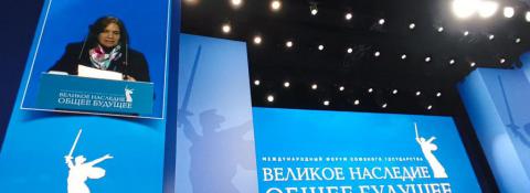 En su intervención, ante delegados procedentes de 20 naciones; la Vicepresidenta del legislativo cubano enfatizó en que Cuba también dio su modesto pero digno aporte a la victoria, porque «sangre de unos 250 cubanos se derramó en estas tierras, en bello gesto de altruismo y solidaridad que jamás olvidaremos». También, recordó la visita del Comandante en Jefe Fidel Castro a la heroica ciudad de Volgogrado en 1963, cuando el líder histórico de la Revolución Cubana destacó el inmenso heroísmo del pueblo soviético.