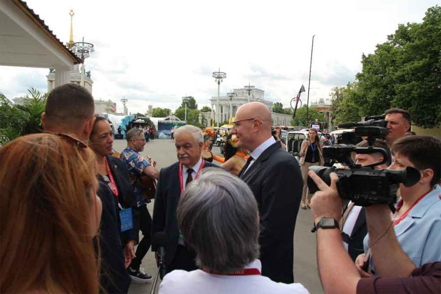 Hasta el stand de la mayor de las Antillas, previo a la inauguración del evento, llegó el viceprimer ministro del gigante euroasiático Dmitry Chernyshenko, quien saludó a los presentes entre los que se encontraban la viceministra de Turismo de Cuba, Yamily Aldama, y el embajador antillano en Moscú, Julio Garmendía.