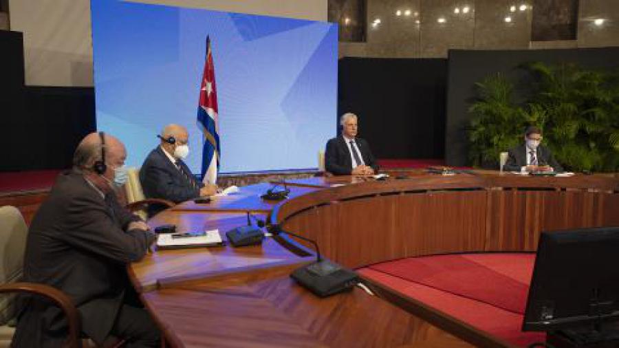 Junto al mandatario cubano, participaron en esta sesión de trabajo el viceprimer ministro, Ricardo Cabrisas Ruiz, el canciller Bruno Rodríguez Parrilla, y el ministro del Comercio Exterior y la Inversión Extranjera, Rodrigo Malmierca Díaz.