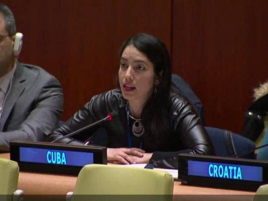 Cuba participó en el día de hoy en la nueva ronda de negociaciones intergubernamentales para la reforma del Consejo de Seguridad de las Naciones Unidas. Durante su intervención, Yillianne Sánchez Rodríguez, Agregada Diplomática de la Misión Permanente de Cuba ante las Naciones Unidas, ratificó la posición de la isla relativa al resultado de este ejercicio, el cual deberá transformar al Consejo de Seguridad en un órgano eficaz, transparente, representativo y democrático. Indicó además que dicho proceso debe ser conducido por los Estados Miembros y caracterizase por ser inclusivo y participativo.