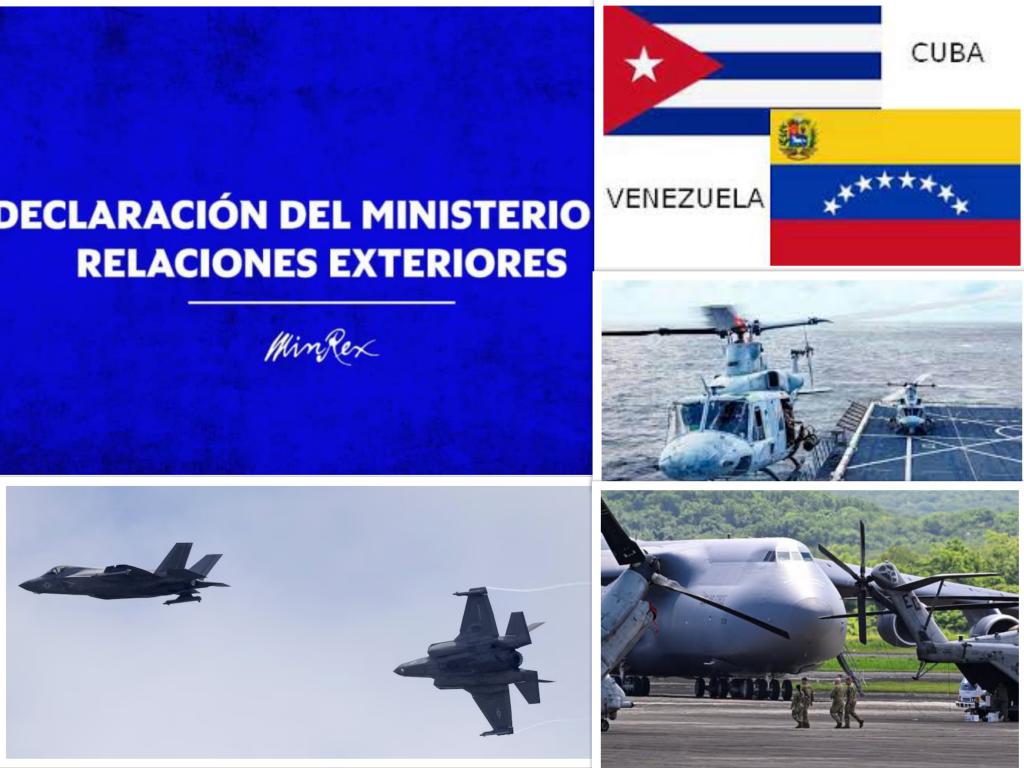 La Habana, Cuba. En un segundo comunicado emitido por el Ministerio de Relaciones Exteriores de Cuba se reitera la denuncia sobre la gestación de un pretexto por parte del gobierno yanqui para acometer una acción militar, dada la injustificada acumulación de aviones de combate en el Caribe, para arremeter contra la República Bolivariana de Venezuela. A la vez que se alerta sobre las consecuencias impredecibles de una agresión militar, se ratifica la solidaridad inquebrantable de Cuba con el gobierno y el pueblo bolivarianos.