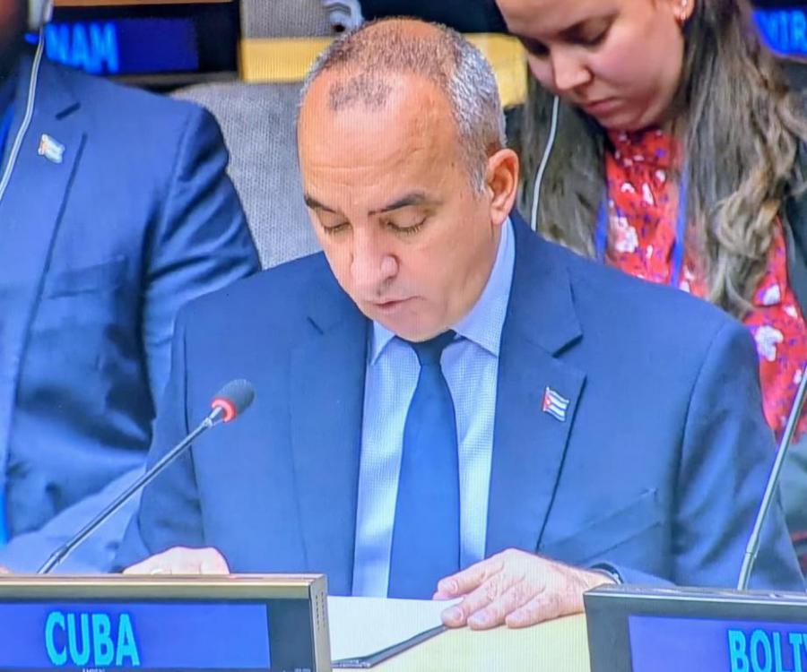 El Representante Permanente de Cuba denunció que la doctrina estadounidense de la “paz mediante la fuerza” ha generado una profunda inestabilidad en el Medio Oriente y a nivel global, y rechazó la escalada agresiva de Estados Unidos contra Cuba y otras naciones soberanas, como expresión del hegemonismo, la coerción y el chantaje.