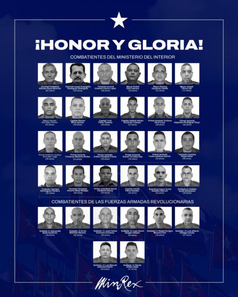 Cuba rendirá homenaje póstumo a combatientes caídos en cumplimiento del deber en Venezuela