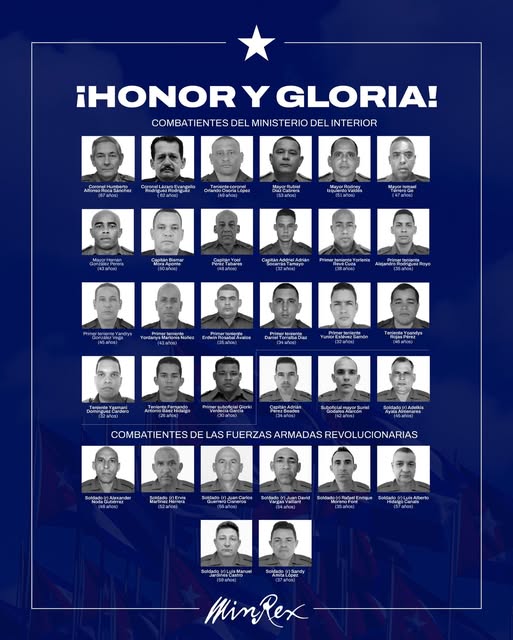 Este jueves 15 de enero de 2026 arribarán a la Patria los restos mortales de los 32 combatientes caídos heroicamente durante el criminal ataque perpetrado por el gobierno de los Estados Unidos contra la hermana República Bolivariana de Venezuela.