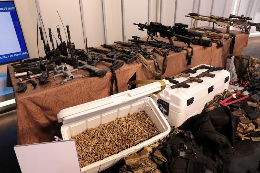 Se contabilizaron 134 cargadores y un total de 12 846 municiones de diferentes calibres, entre ellos 5.56x45 mm y 7.62 mm (AKM). Una de las pistolas ocupadas tenía capacidad para perforar chalecos antibalas. Asimismo, fueron incautados un dron con dos cámaras, diez equipos de comunicación, cuchillos de comando, una planta eléctrica portátil, una cizalla para cortar candados y emblemas identificativos, entre ellos el del denominado movimiento contrarrevolucionario 30 de Noviembre y distintivos de “autodefensa del pueblo”.