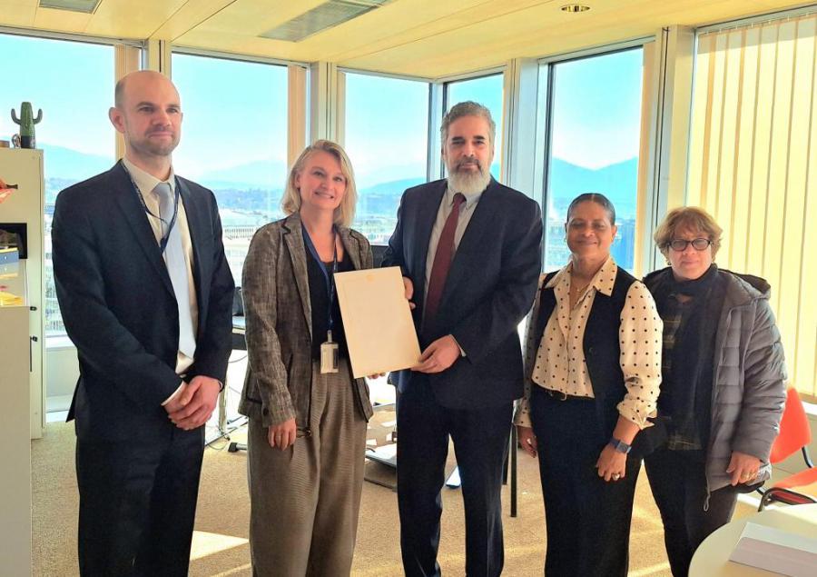 Ginebra, 4 de marzo de 2026. El Embajador en Ginebra, Rodolfo Benítez Verson, depositó hoy formalmente, en la sede de la Organización Mundial de la Propiedad Intelectual (OMPI), el instrumento de adhesión de Cuba al Tratado de Marrakesh para Facilitar el Acceso a Obras Publicadas a las Personas Ciegas, con Discapacidad Visual o con Otras Dificultades para acceder al Texto Impreso.