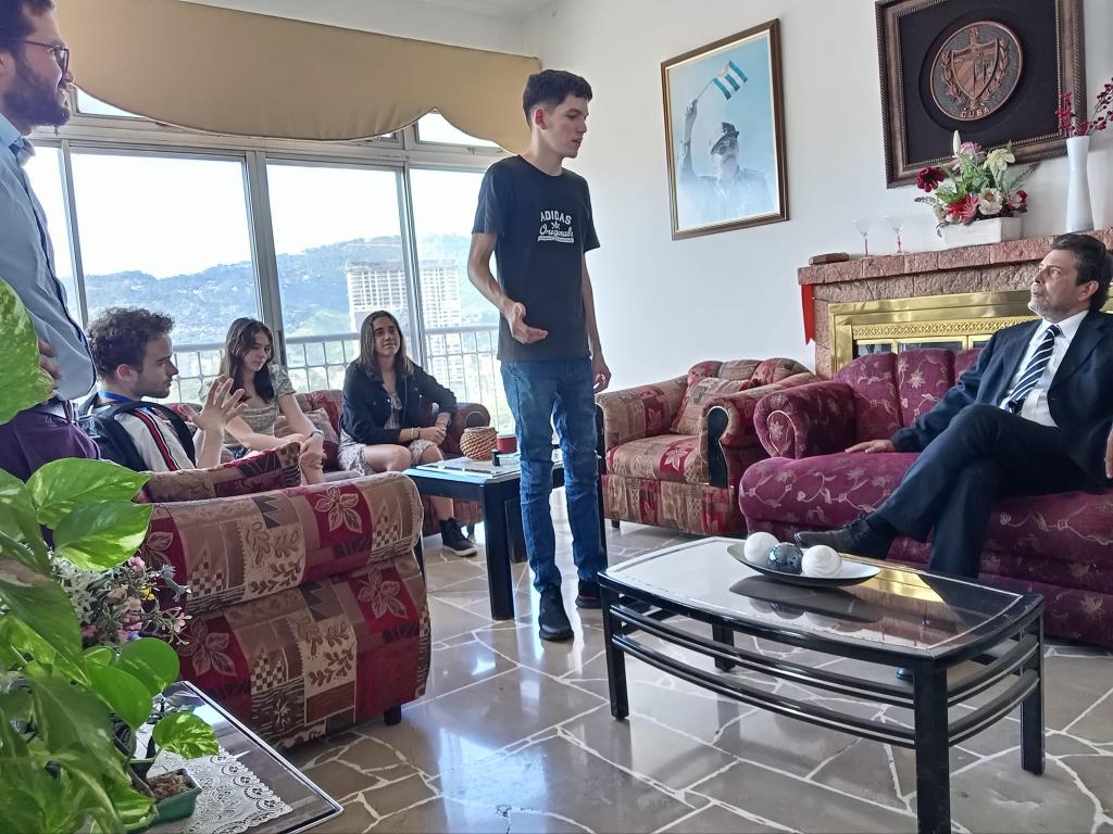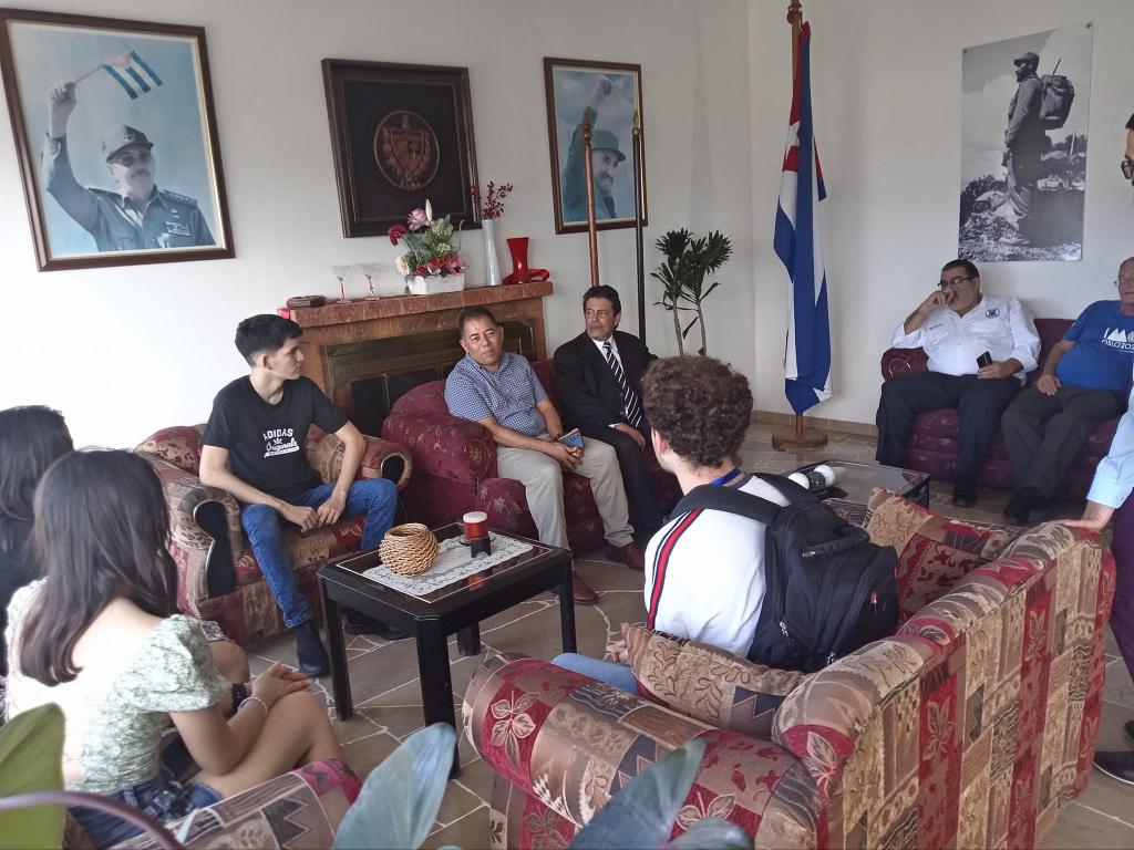 El Encargado de Negocios de la Embajada de Cuba en Honduras, Noel Álvarez, recibió esta tarde en la sede diplomática a la delegación cubana. En un ameno intercambio, los jóvenes refirieron el orgullo de representar a la Isla Caribeña en este exigente y competitivo evento académico, y destacaron la intensa jornada de preparación recibida por los entrenadores cubanos para lograr los excelentes resultados alcanzados.