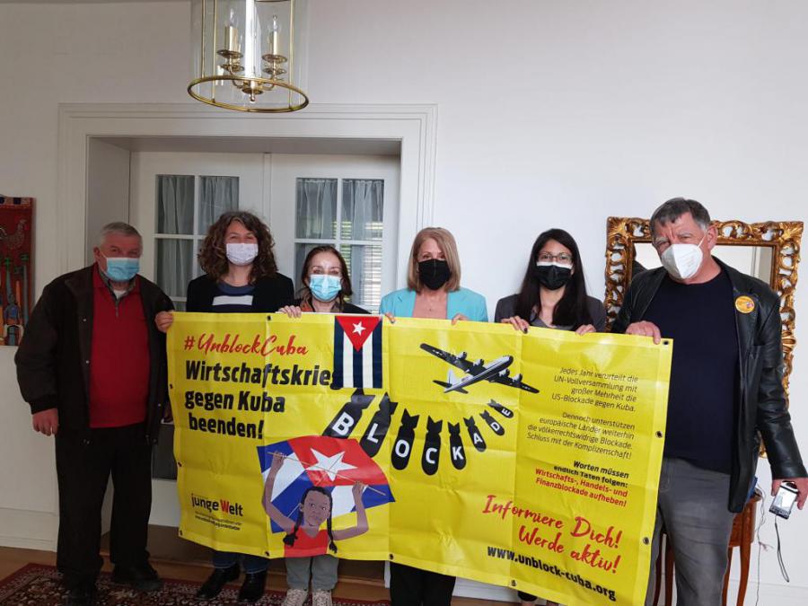 La diplomática cubana agradeció por la permanente e invariable solidaridad hacia Cuba a lo largo de casi cinco décadas. También resaltó las acciones y esfuerzos que realizan en respaldo al legítimo reclamo del pueblo cubano por el cese del bloqueo estadounidense. Ejemplo de ello es su activa participación en la campaña Europea Unblock Cuba, como parte de la cual desde la pasada semana se encuentran colocados en espacios públicos de diferentes ciudades suizas vallas y carteles alegóricos a la misma.