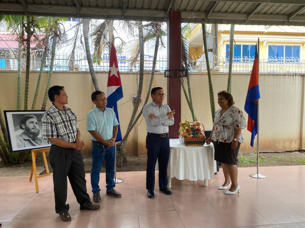 La embajadora Liurka Rodríguez recordó los principales hitos de los vínculos entre Cuba y Cambodia durante más de seis décadas “con un componente histórico clave, sobre fundamentos de respeto, admiración, identificación de objetivos comunes de progreso, a pesar de la distancia geográfica”. Resaltó la intensa agenda bilateral de intercambio de visitas entre los respectivos primeros ministros en el 2022, el diálogo de máximo nivel entre las autoridades, los acuerdos de cooperación rubricados en materia de salud, deportes, cultura, entre otros consensos que darán un nuevo impulso a los nexos.