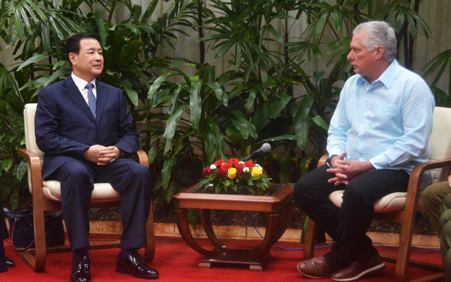 “Es un placer recibirlo en el Palacio de la Revolución”, aseguró en la tarde de este sábado el Primer Secretario del Comité Central del Partido Comunista y Presidente de la República, Miguel Díaz-Canel Bermúdez, al comisario general Wang Xiaohong, consejero de Estado y ministro de Seguridad Pública de China, quien se encuentra de visita en nuestro país.