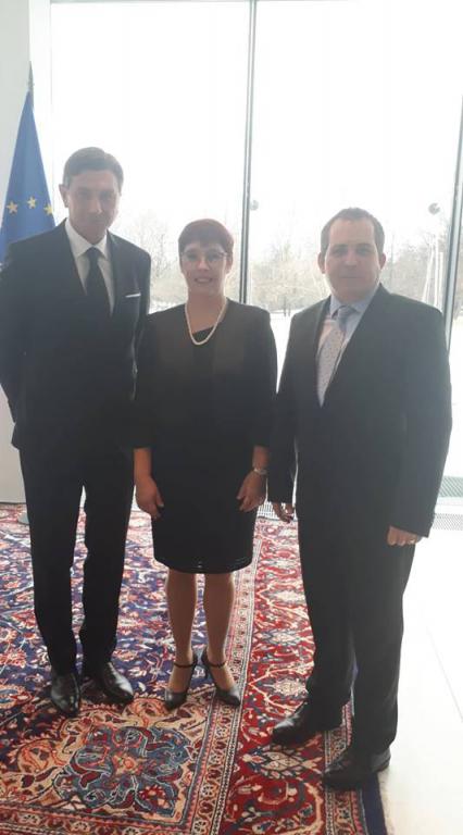 Liubliana, 30 de enero de 2019. El Embajador de la República de Cuba ante la República de Eslovenia, Excmo. Sr. Juan Antonio Fernández Palacios, sostuvo un encuentro con las más altas autoridades de ese país: el Presidente de la República, Excmo. Sr. Borut Pahor; el Primer Ministro, Excmo. Sr. Marjan Šarec; el Viceprimer Ministro y Ministro de Relaciones Exteriores, Miro Cerar y con otros representantes del Estado y el Gobierno, en el marco de la Recepción por el Nuevo Año; celebrada en el Centro de Congresos de Liubliana, la capital del país europeo; oportunidad en la que se reafirmó el buen estado de las relaciones bilaterales y la voluntad de continuar fortaleciéndolas.
