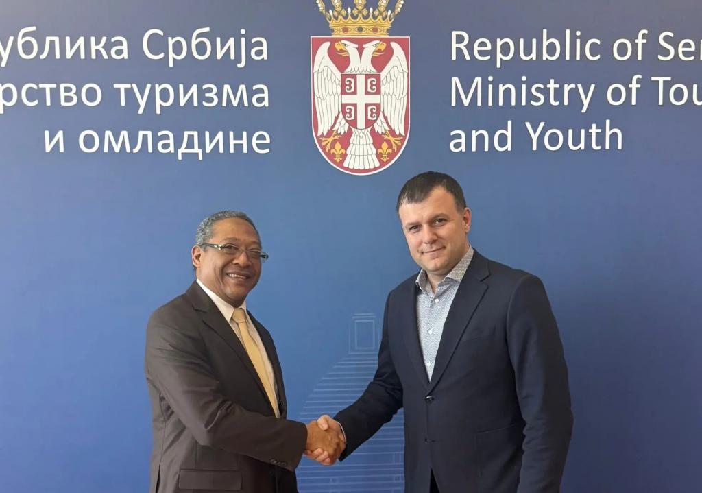 Belgrado, Serbia, 28.01.2026. El ministro de Turismo y Juventud de la República de Serbia, Hussein Memic, y el embajador de Cuba en la nación balcánica, Pavel Orencio Díaz Hernández, sostuvieron un encuentro de trabajo desarrollado en un ambiente de amistad, cordialidad y espíritu cooperación. En la cita se revisaron asuntos claves de la agenda bilateral, especialmente en el ámbito turístico y juvenil, lo que refleja la voluntad compartida de impulsar nuevas oportunidades de colaboración y consolidar los lazos históricos entre Belgrado y La Habana.