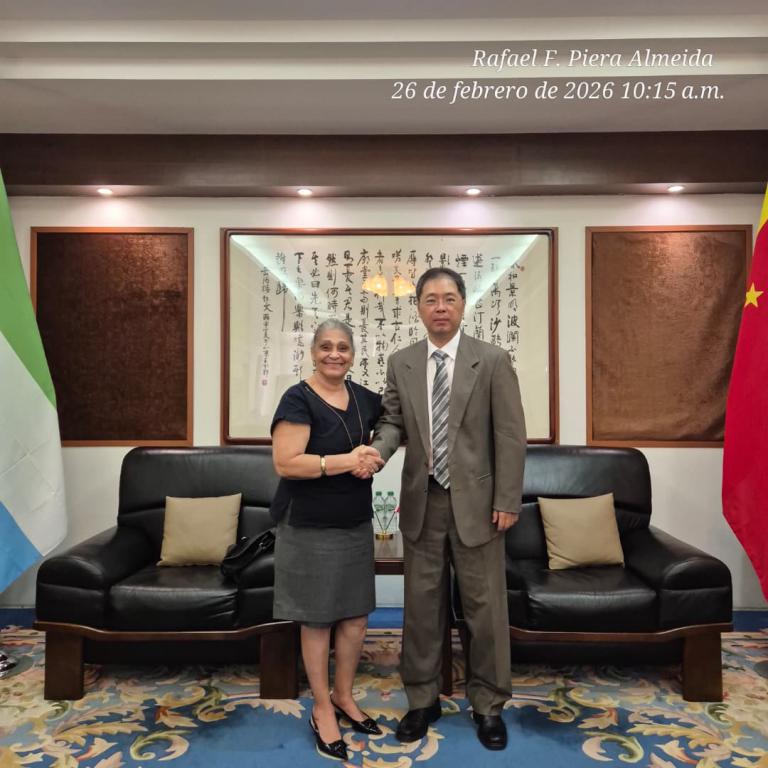 Freetown, February 26, 2024. On Thursday morning, the Cuban Ambassador to Sierra Leone, Her Excellency Ms. Norma Sánchez Águila, paid a courtesy visit to His Excellency Mr. Zhao Yong, Ambassador of the People's Republic of China to Sierra Leone.