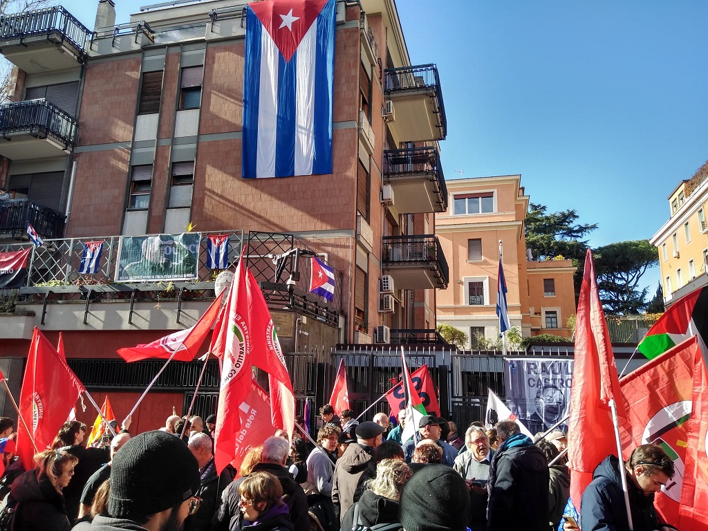 Roma, 25 gennaio 2026.- Una grande manifestazione di solidarietà con Cuba, che ha visto protagonisti i cubani residenti all’estero, rappresentanti delle forze politiche italiane e gruppi solidali con la nazione antillana, ha condannato le minacce di aggressione del governo degli Stati Uniti e il genocida blocco economico, commerciale e finanziario imposto da oltre 60 anni all'isola caraibica.