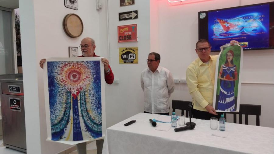 El artista de la plástica residente en Ecuador Luis Alberto Ruiz Saavedra entregó a los representantes de la Embajada dos obras de su autoría donde se resalta la cubanía.