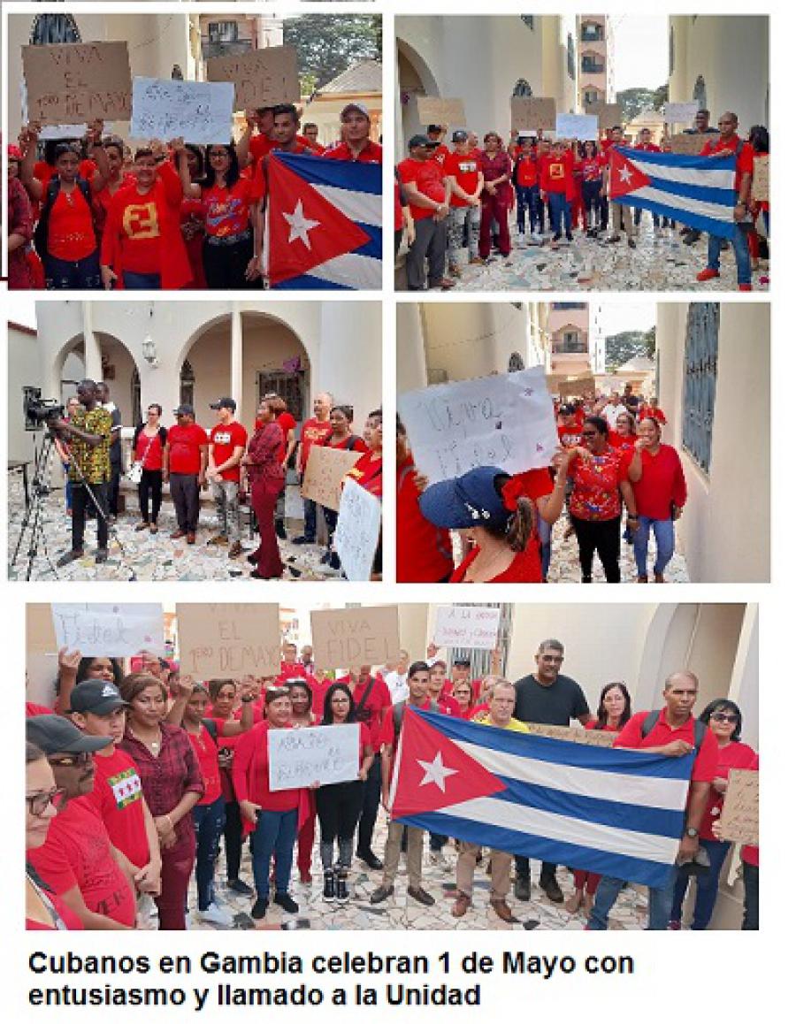 Banjul, 5 May.- Con marcado entusiasmo y un llamado a la Unidad de su pueblo, la Brigada Médica Cubana (BMC) y la Misión Estatal de la isla caribeña en Gambia celebraron este 5 de mayo el Día Internacional de los Trabajadores.