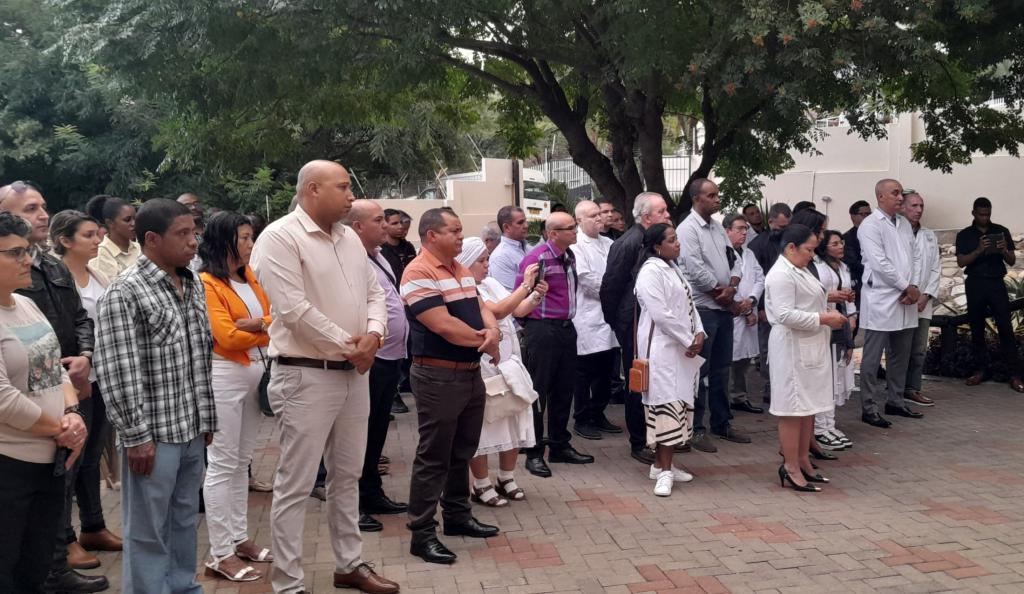Médicos, ingenieros, arquitectos y funcionarios diplomáticos que laboran en Windhoek, ratificaron su fidelidad a la Revolución y el rechazo al cerco económico a que es sometido nuestro país por la actual administración de Estados Unidos.
