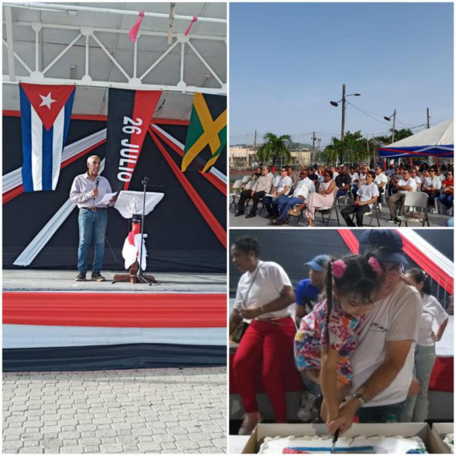 Kingston, 26 de julio de 2024. Representantes de varias generaciones de cubanos residentes en Jamaica participaron activamente en la organización y celebración del acto por el 71 aniversario del asalto a los Cuarteles Moncada y Carlos Manuel de Céspedes.