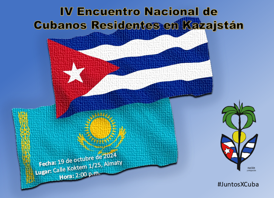 Astaná, 7 de octubre de 2024. El próximo sábado 19 de octubre de 2024, se celebrará el IV Encuentro Nacional de Cubanos Residentes en Kazajstán en la ciudad de Almaty, con la presencia de los niños y jóvenes descendientes de los connacionales que residen en este país.