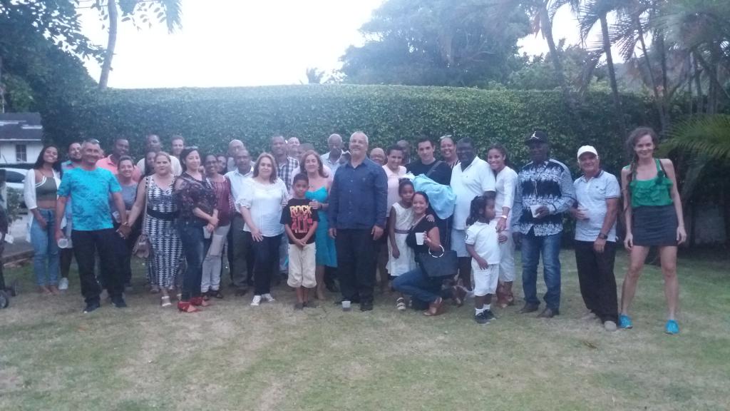 Santa Lucia, 5 de Mayo del 2019. Un amplio grupo de cubanos residentes en Santa Lucia se dieron cita en la Embajada de Cuba para reafirmar su compromiso con la patria e intercambiar sobre temas de interés. El Embajador Alejandro Simancas y la encargada de asuntos consulares Lourdes Aguilera les dieron la bienvenida y les reiteraron las palabras del Presidente Miguel Diaz Canel, cuando expresó ante cubanos en Nueva York, en septiembre pasado, de que el proceso de fortalecimiento de los vínculos entre Cuba y sus nacionales en el exterior es continuo e irreversible, como muestra de la continuidad de la Revolució n y de la unidad de la nación. Durante el intercambio se acordó trabajar en la creación de las condiciones para la fundación de una Asociación de cubanos residentes en Santa Lucia y para lograr una representación en el Encuentro regional de cubanos residentes en América latina y el Caribe, el próximo octubre en México. Como resumen del encuentro se suscribió una declaración que expresa el más enérgico rechazo a la nueva escalada agresiva de Estados Unidos contra Cuba, condena el reforzamiento del bloqueo y reafirma la decisión de defender como bienes sagrados de la patria su soberanía e independencia.