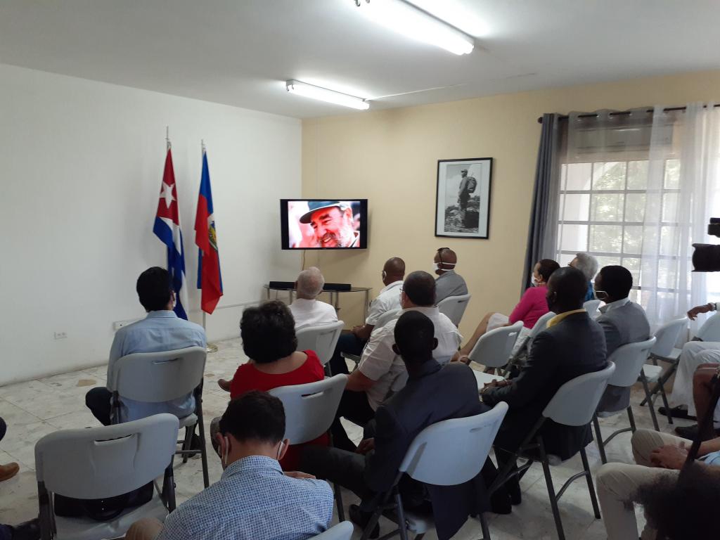 Los presentes tuvieron oportunidad de acercarse a la personalidad y obra política de Fidel, a través de un material audiovisual que recoge las impresiones de disímiles personalidades que tuvieron oportunidad de intercambiar con el líder cubano.