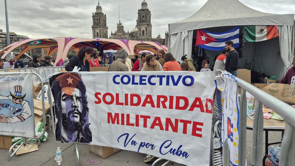 Ciudad de México, 22 de febrero de 2026.— Este domingo culminó en el Zócalo de la Ciudad de México la campaña de acopio solidario con Cuba, iniciada el pasado 14 de febrero, Día del Amor, bajo el lema “De pueblo a pueblo, acabemos con el bloqueo”. La iniciativa fue organizada por el Colectivo de Solidaridad Militante Va por Cuba y la Asociación de Cubanos Residentes en México “José Martí”.