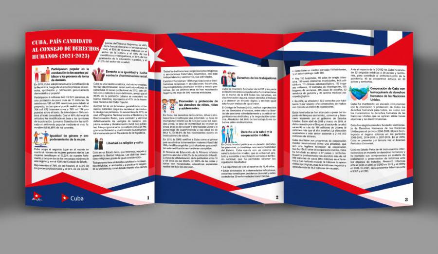 Nueva York, 8 de octubre de 2020. Cuba tiene un amplio historial en materia de cooperación con todos los mecanismos de derechos humanos que se aplican sobre bases universales y no discriminatorias; manteniendo la disposición a intercambiar sobre derechos humanos sobre bases de respeto e igualdad soberana, con apego a los principios, objetividad, imparcialidad y no selectividad como sustento imprescindible de la cooperación internacional en materia de derechos humanos.