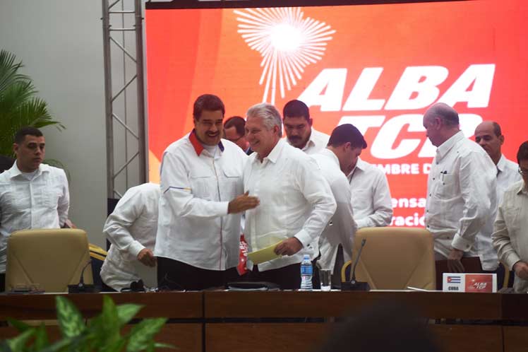 - Los Jefes de Estado y de Gobierno y los Jefes de Delegaciones de los países miembros e invitados de la Alianza Bolivariana para los pueblos de Nuestra América - Tratado de Comercio de los Pueblos (ALBA-TCP), nos reunimos en La Habana, el 14 de diciembre de 2019, para conmemorar el XV Aniversario de la Alianza, fundada por los Comandantes Fidel Castro Ruz y Hugo Rafael Chávez Frías, con el firme compromiso de profundizarla, como expresión de las aspiraciones de independencia regional y baluarte de la integración genuinamente latinoamericana y caribeña frente a las crecientes amenazas a la autodeterminación, la soberanía, la paz y la estabilidad regionales.