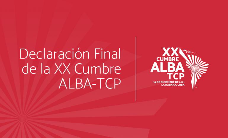 - Los Jefes de Estado y de Gobierno y los Jefes de Delegaciones de los países de la Alianza Bolivariana para los pueblos de Nuestra América-Tratado de Comercio de los Pueblos (ALBA-TCP), reunidos en La Habana, Cuba, el 14 de diciembre de 2021, para conmemorar el XVII Aniversario de la Alianza. Al suscribir la presente Declaración, renovamos nuestro compromiso con el fortalecimiento de este mecanismo de concertación política, sustentado en los principios de solidaridad, justicia social, cooperación y complementariedad económica, fruto de la voluntad política de sus fundadores, los Comandantes Fidel Castro Ruz y Hugo Rafael Chávez Frías.