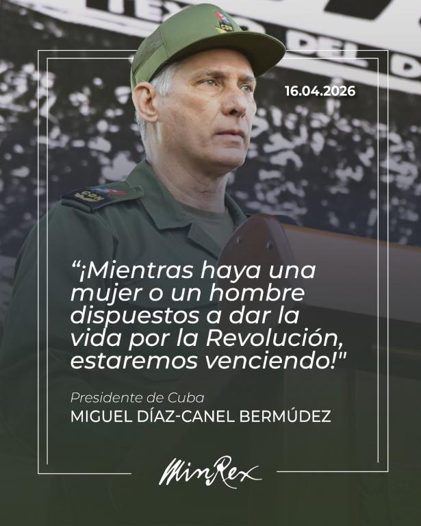 Somos una nación con una gran historia y convicciones que defender; de hombres y mujeres pacíficos, solidarios; un pueblo que cada día con su obra realiza una Vindicación de Cuba; y que como en las arenas de Playa Girón, hace 65 años, bajo el grito de ¡Patria o Muerte!, obtendrá la victoria en defensa de la soberanía y el socialismo.