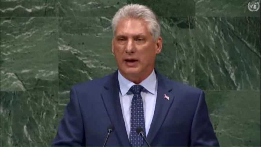 Printre popoarele noastre, ne bucurăm de legături istorice și culturale care sunt tot mai aproape, cu expresii în arte, sport, științe, mediu, printre altele. Se recunoaște potențialul unei relații de afaceri netede și o înțelegere autentică și respectuoasă ar aduce beneficii intereselor întregii regiuni. Cu toate acestea, elementul esențial și definitoriu al relației bilaterale rămâne blocada, care are ca scop strangularea economiei cubaneze, cu scopul de a genera dificultăți și de a modifica ordinea constituțională. Este o politică crudă care pedepsește familiile cubaneze și întreaga națiune. Ea constă în cel mai cuprinzător și prelungit sistem de sancțiuni economice care a fost aplicat vreodată împotriva oricărei țări. Aceasta a constituit și continuă să constituie un obstacol fundamental în calea dezvoltării țării și a realizării aspirațiilor de progres și bunăstare a mai multor generații de cubanezi. Așa cum sa spus de atâția ani în același scenariu, blocada dăunează grav, datorită aplicării sale extrateritoriale agresive, suveranității și intereselor tuturor țărilor. În numele poporului cubanez, mulțumesc acestei Adunări Generale pentru respingerea aproape unanimă a blocadei economice, comerciale și financiare impuse de Statele Unite împotriva țării mele. Dar performanța guvernului Statelor Unite împotriva Cubei merge mai departe. Include programe publice și secrete interferență în treburile nepoliticos noastre interne, scopul pentru care utilizează zeci de milioane de dolari, care sunt aprobate oficial în bugetul său, prin încălcarea normelor și principiilor pe care se bazează această organizație și, în special, suveranitatea Cubei ca națiune independentă.