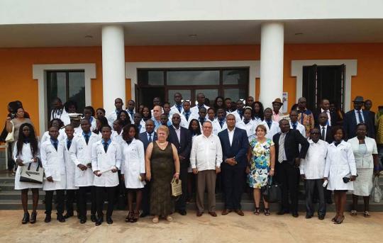 GUINEA BISSAU, 6 de noviembre de 2017.- Con el nombre de Fidel Castro Ruz, se realizó el acto de graduación del curso 2016-2017 de la Facultad de Medicina cubano-guineense “Raúl Díaz Arguelles”, en el anfiteatro del Instituto Nacional de Salud de Guinea Bissau.