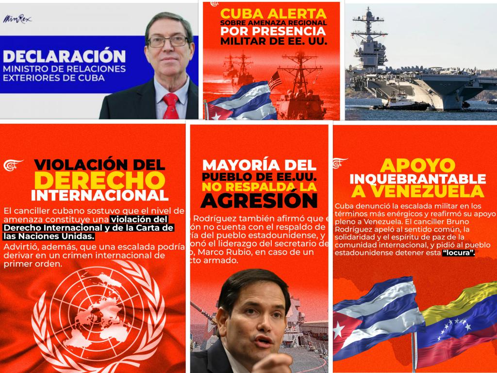 La Habana, Cuba. El ministro de Relaciones Exteriores, Bruno Rodríguez Parrilla, reiteró en otro reciente comunicado la presencia de Estados Unidos en el Caribe y su amenaza para la región, pues esa presencia militar exagerada y agresiva constituye una amenaza contra América Latina y el Caribe en su conjunto. Acceda al contenido íntegro de la Declaración:
