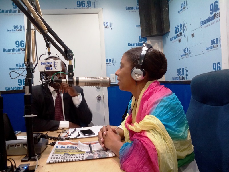 NASSAU, 14 de noviembre del 2017.- La Embajadora de Cuba en Las Bahamas, Ismara Vargas Walter, participó como invitada especial en el programa radial “Connected”, que dirige el periodista bahamés Lester Cox, en la 96.9 de la Guardian Radio.