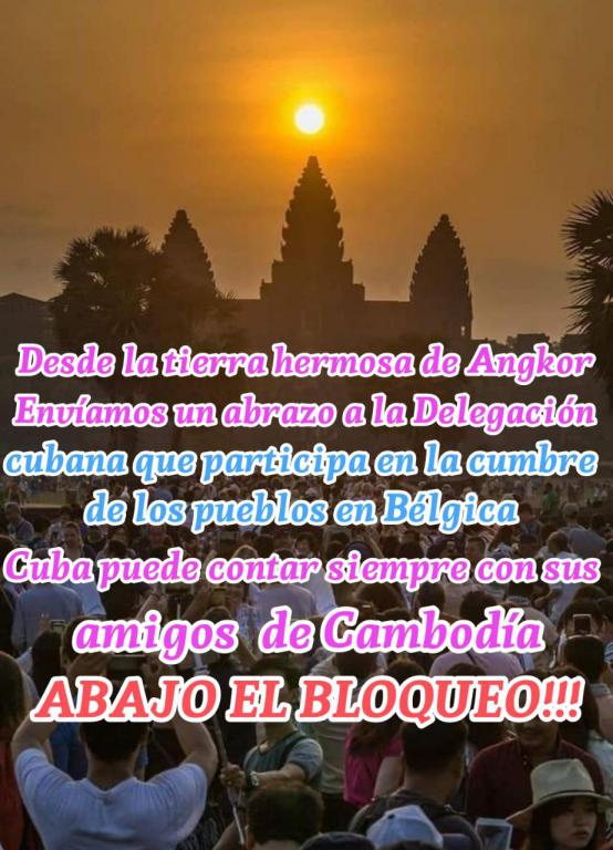 Desde Wat Penh, el punto cero de Phnom Penh, enviamos un abrazo a la delegación cubana que participa en la Cumbre de los Pueblos en Bélgica. Cuba puede contar siempre con sus amigos de Cambodia. ¡¡¡Abajo el bloqueo!!!