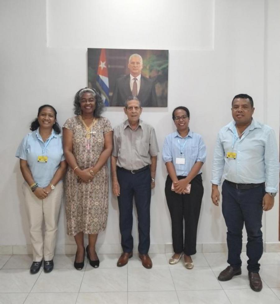 Dili, 10 de febrero de 2025. En la sede la Embajada de Cuba, la embajadora Alina Aldama, junto al ministro-consejero Pablo Romero, recibieron y el asesor legal de la Secretaría de Arte y Cultura Nidio Barrios Pinto, quien estuvo acompañado de las funcionarias Maria Santos Dias Ximenes y Maria Amaral Guterres, ambas representantes de Xanana Gusmão Reading Room (XGRR).