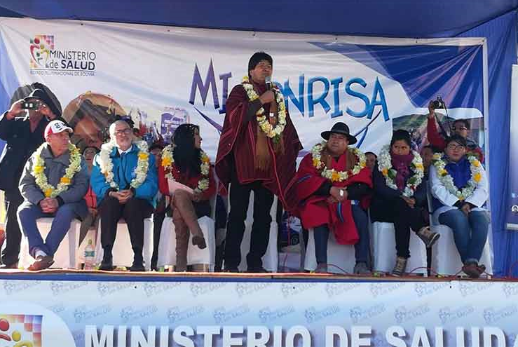 Morales hizo entrega de equipamiento para el programa Mi Salud, en tanto inauguró otro proyecto en la ciudad de El Alto, para tratamientos odontológicos. Afirmó que el Gobierno continuará apoyando y promoviendo estos programas, así como la construcción de hospitales y formación y capacitación de personal médico y especialistas.