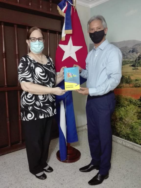 Santo Domingo, 1ero de septiembre: La embajadora de Cuba en República Dominicana, M. Carina Soto recibió en la mañana de hoy al prestigioso economista Dominicano Haivanjoe NG Cortiñas, quien también ha conseguido notoriedad como escritor y académico en varias universidades nacionales.