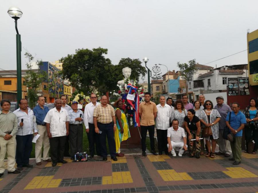 En el tributo, la Coordinadora Nacional de Solidaridad con Cuba, la Asociación de Cubanos Residentes en el Perú-Raíces Mambisas y la embajada de Cuba colocaron ofrendas florales ante el busto de Martí erigido en su memoria en Lima.