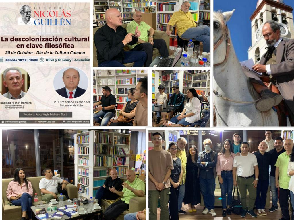 Asunción, Paraguay. Un ameno y didáctico evento teórico con el tema: La Descolonización Cultural en Clave Filosófica desde América Latina se efectuó en la sede asuncena de la librería “Nicolás Guillén”, con la disertación del connotado escritor argentino Francisco “Tete” Romero, acompañado por otro destacado chaqueño, el Doctor Honoris Causa Oscar Alfredo “Mempo” Giardinelli, periodista y escritor multipremiado. Al foro de debate organizado por Librería de la Paz SRL, se invitó al Embajador de Cuba, Dr.C Francisco Fernández Peña, ocasión propicia para exaltar, en un ambiente latinoamericano-caribeño el Día de la Cultura Cubana, que se celebra este 20 de Octubre.