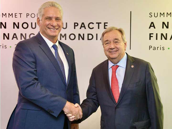 Díaz-Canel, quien preside el Grupo de los 77 más China, y Guterres son dos de las personalidades invitadas a la cumbre por el jefe de Estado francés, Emmanuel Macron. El evento busca consensos que lleven al establecimiento de un sistema financiero más reactivo, justo y solidario, que permita enfrentar las desigualdades, acompañar la lucha contra el cambio climático y materializar los objetivos de desarrollo sostenible.
