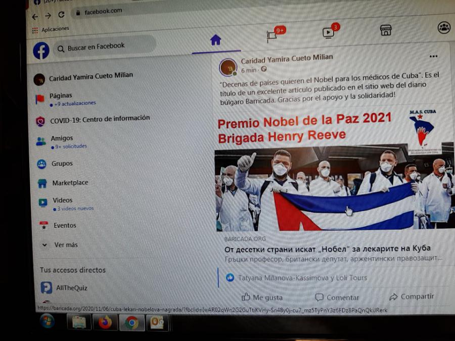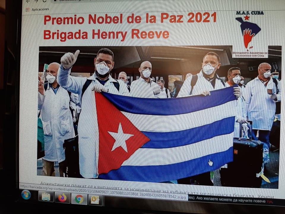 En su edición de hoy 6 de Noviembre, bajo el título "Decenas de países quieren el Nobel para los médicos de Cuba", el sitio web Barricada, de la Unión de Periodistas Hispanohablantes de Bulgaria, publica una nueva crónica de la autoría de la periodista Kadrinka Kadrinova, en la que se evoca la labor solidaria, humanista y altruista de la colaboración médica internacionalista de Cuba, y su contribución especial en la lucha contra la pandemia de la Covid-19.