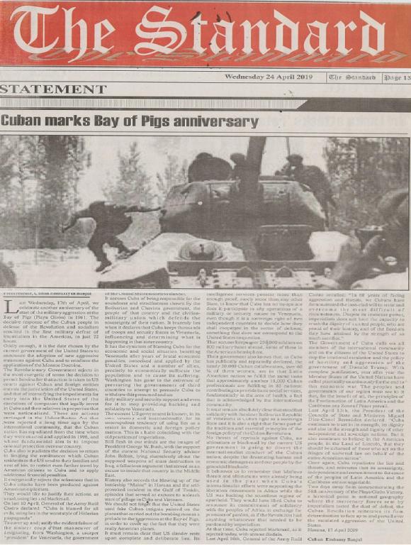 Los periódicos gambianos The Standard y Daily News incluyen hoy en sus páginas, como lo hizo ayer The Voice, la Declaración del Gobierno Revolucionario Cubano de rechazo a la aplicación por Estados Unidos de la Ley Helms-Burton que intensifica el cerco económico, financiero y comercial contra la nación caribeña.
