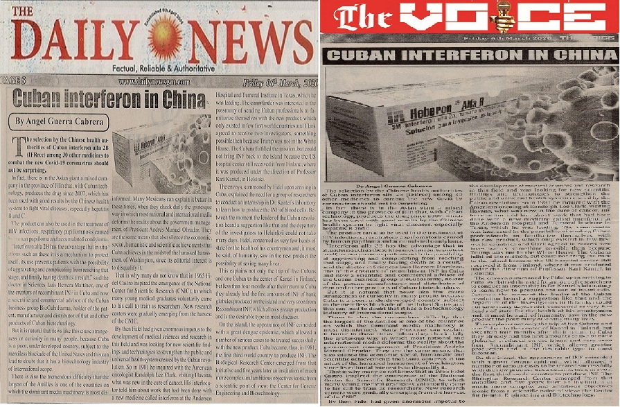 Banjul, 6 mar.- Los diarios gambianos The Voice y Daily News publicaron este viernes en sus respectivas ediciones impresas un interesante artículo sobre medicamento cubano Interferón y su utilización en China contra el coronavirus.