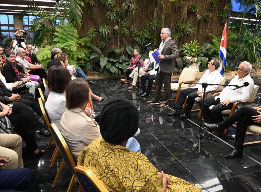 “Gracias a todos por estar en Cuba”, dijo el Jefe de Estado a los pensadores, en un intercambio que contó también con la presencia del Secretario de Organización del Comité Central del Partido Comunista, Roberto Morales Ojeda; así como con el canciller cubano, Bruno Rodríguez Parrilla -ambos, miembros del Buró Político.