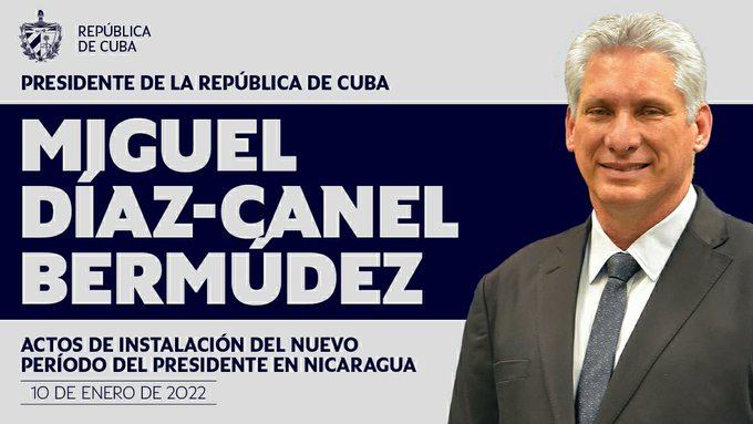 En su perfil en la red social Twitter, antes de salir de la Isla, Díaz- Canel anunció el regreso a la calificada por él como: "entrañable Managua" y a un país soberano que salió del traspatio imperial.