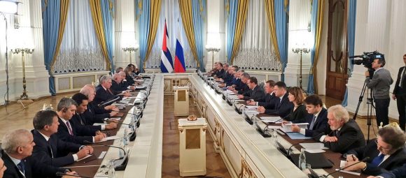 Dmitri Medvedev, primer ministro de Rusia, sostiene este martes un encuentro de trabajo con Miguel Díaz-Canel Bermúdez, presidente de la República de Cuba, y la delegación que lo acompaña en su visita a esa nación.