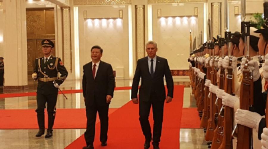 El presidente de Cuba, Miguel Díaz-Canel y su homólogo chino Xi Jinping sostuvieron una reunión oficial este jueves en la Gran Palacio del Pueblo.