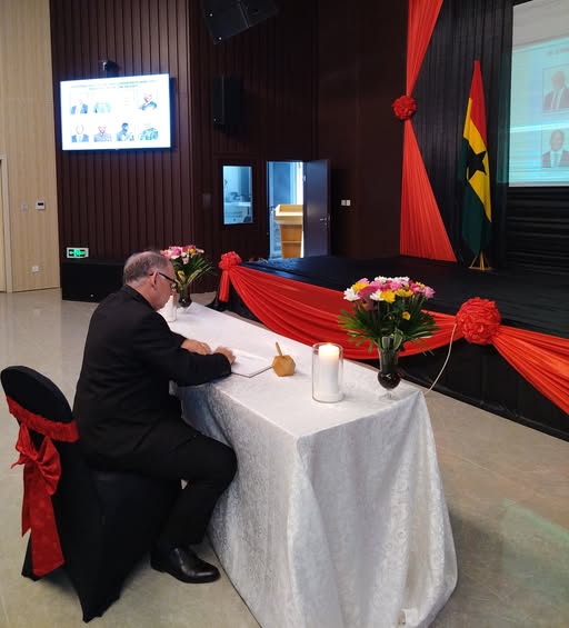 Accra, 11 agosto de 2025. – El embajador cubano en la República de Ghana, Julio Enrique Pujol Torres, participó en la firma del Libro de Condolencias abierto con motivo del accidente aéreo que se cobró la vida de dos ministros, el de Defensa y el de Medio Ambiente, Ciencia, Tecnología e Innovación, junto con otros seis valientes hijos de Ghana.